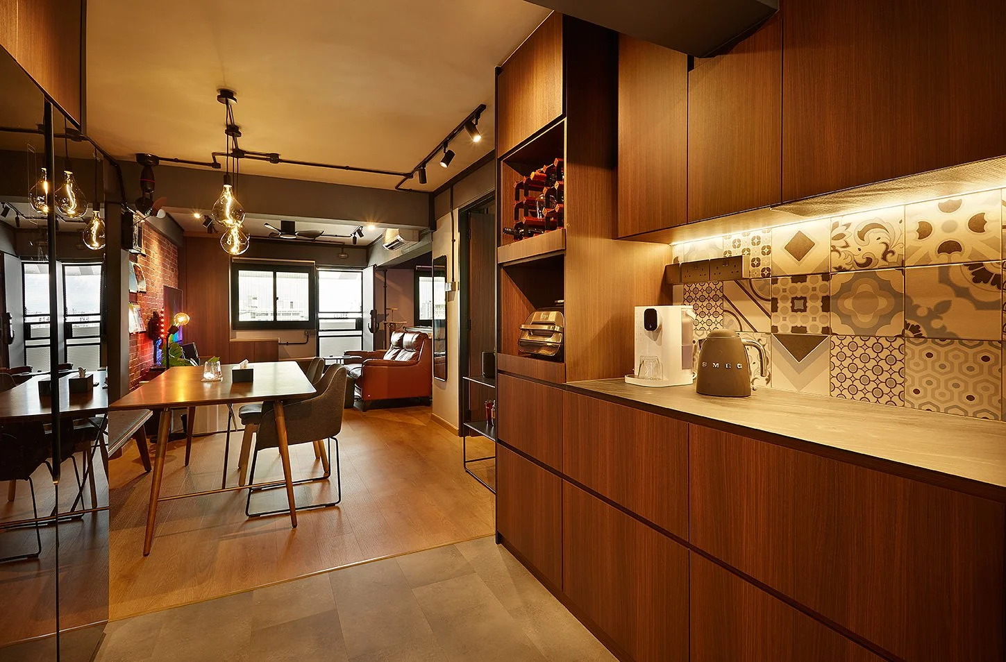 A warm industrial home where rich textures and ambient lighting create a seamless, inviting flow of everyday living.