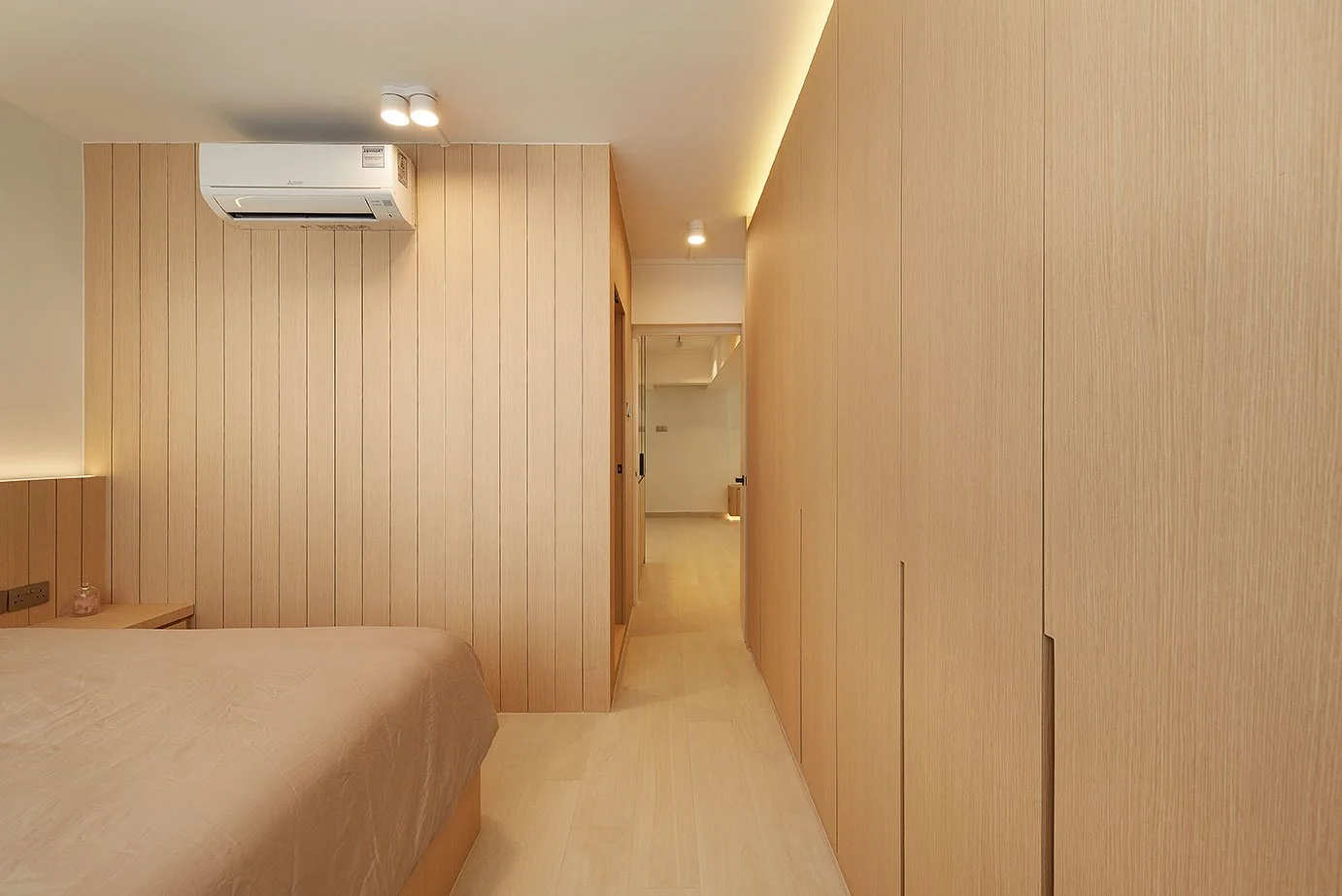 A calm, light-filled retreat shaped by warm timber tones and thoughtful detailing. Sliding glass panels invite daylight into a compact work zone, while integrated shelving and soft ambient lighting keep the space clean, functional and quietly elegant — a home designed for clarity, comfort and everyday ease.