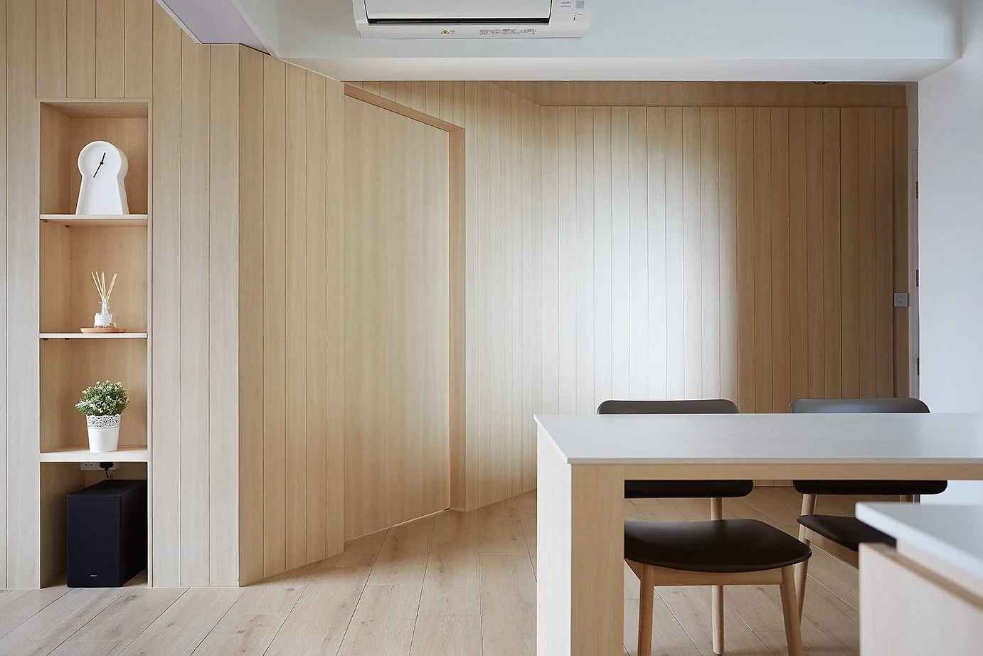 Soft wood tones meet minimalist living.